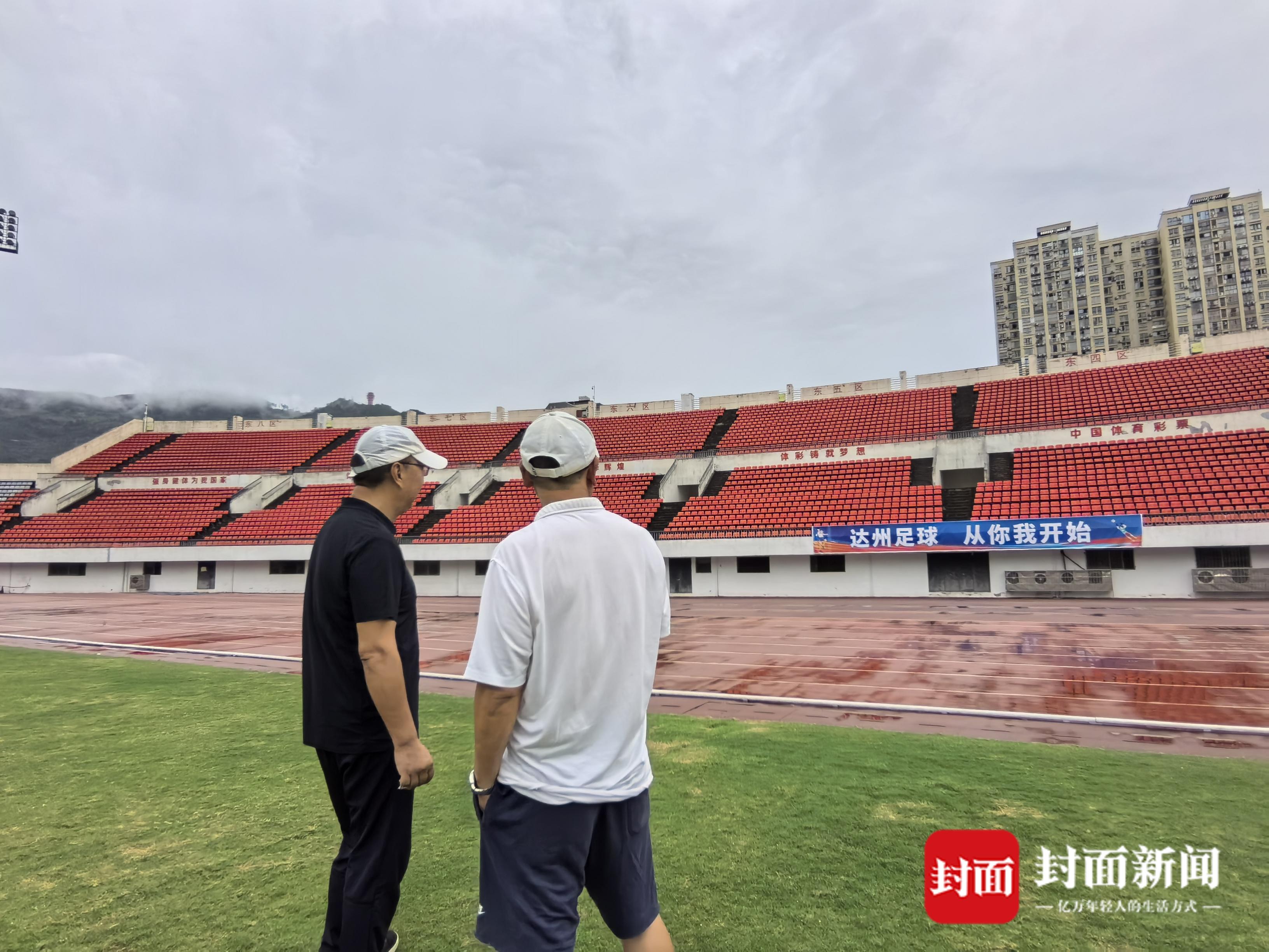 達州足協(xié)主席岳毅和主教練馮濤在球場上等著隊員們