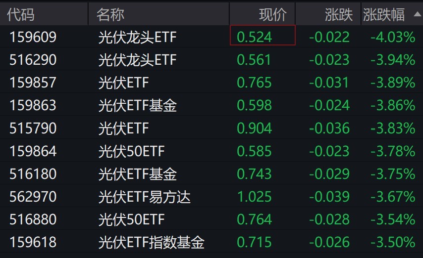受盤面影響,光伏相關(guān)ETF跌超3%。
