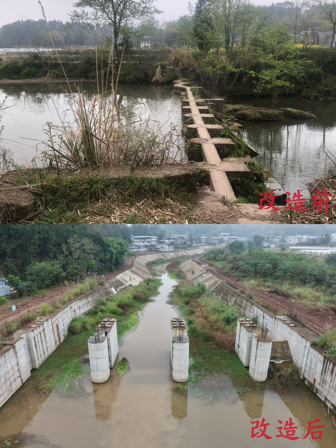 攔河壩前后對比。(改造前由樂至縣水務局供圖)