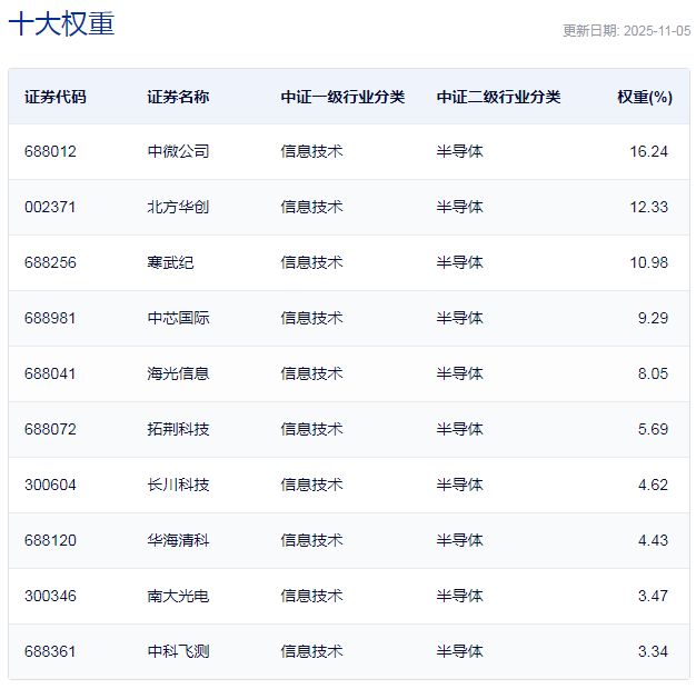 中證半導(dǎo)體產(chǎn)業(yè)指數(shù)主要權(quán)重股