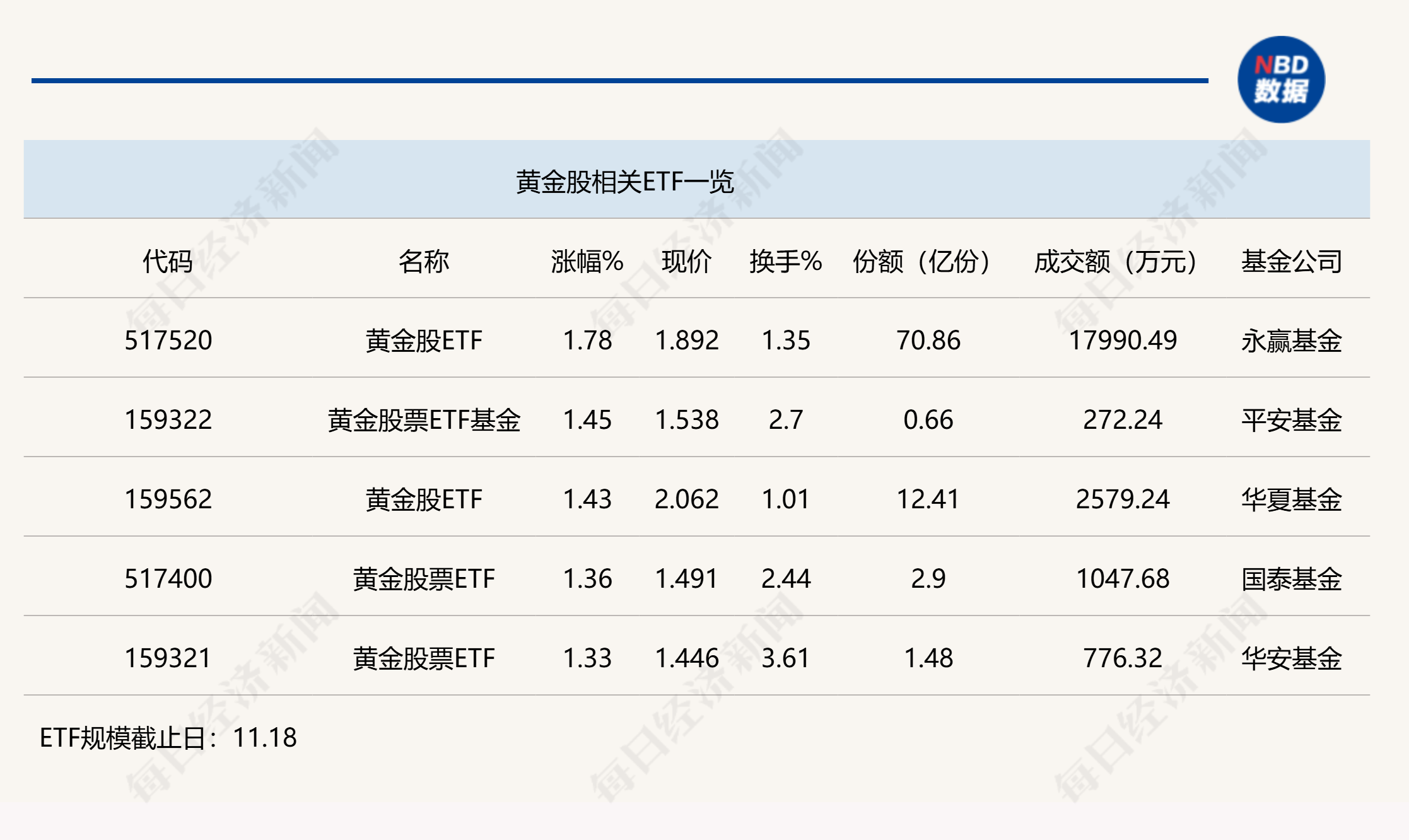 點(diǎn)評:黃金股ETF(517520)今日上午漲幅為1.78%,其份額為70.86億份,半日成交金額為1.8億元,該ETF追蹤的是中證滬深港黃金產(chǎn)業(yè)股票指數(shù),追蹤該指數(shù)的ETF還包括黃金股票ETF基金(159322)、黃金股ETF(159562)等。