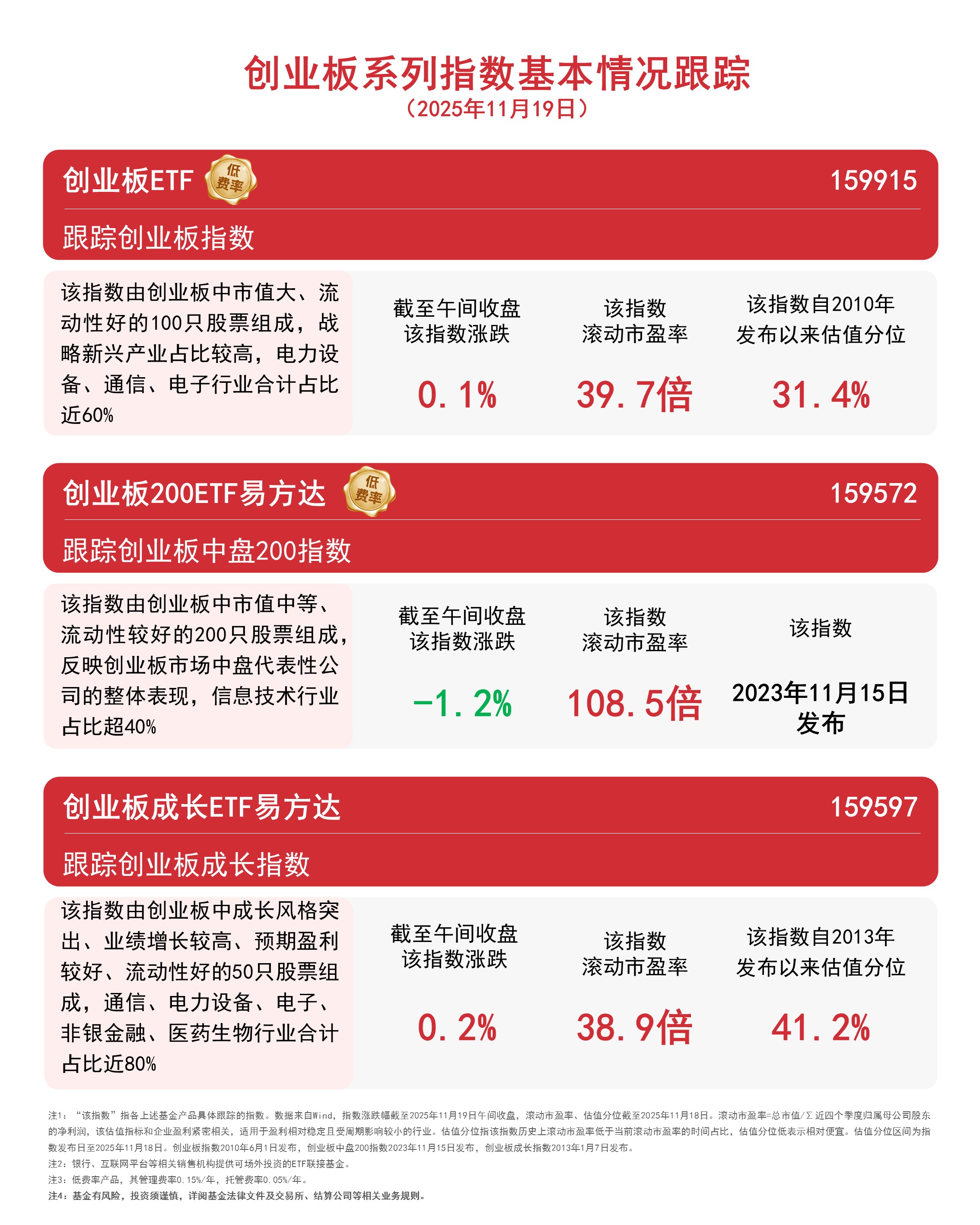 創(chuàng)業(yè)板系列指數(shù)延續(xù)漲勢(shì),創(chuàng)業(yè)板ETF(159915)、創(chuàng)業(yè)板成長(zhǎng)ETF易方達(dá)(159597)等產(chǎn)品受關(guān)注