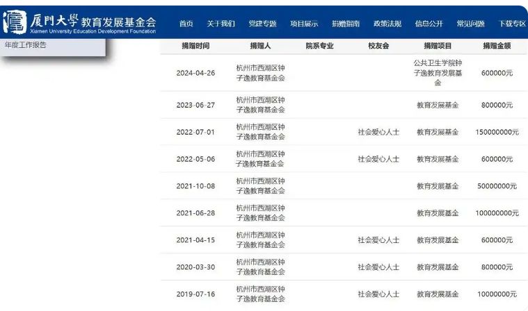 廈門大學(xué)教育發(fā)展基金會(huì)工作報(bào)告。截圖自廈門大學(xué)官網(wǎng)