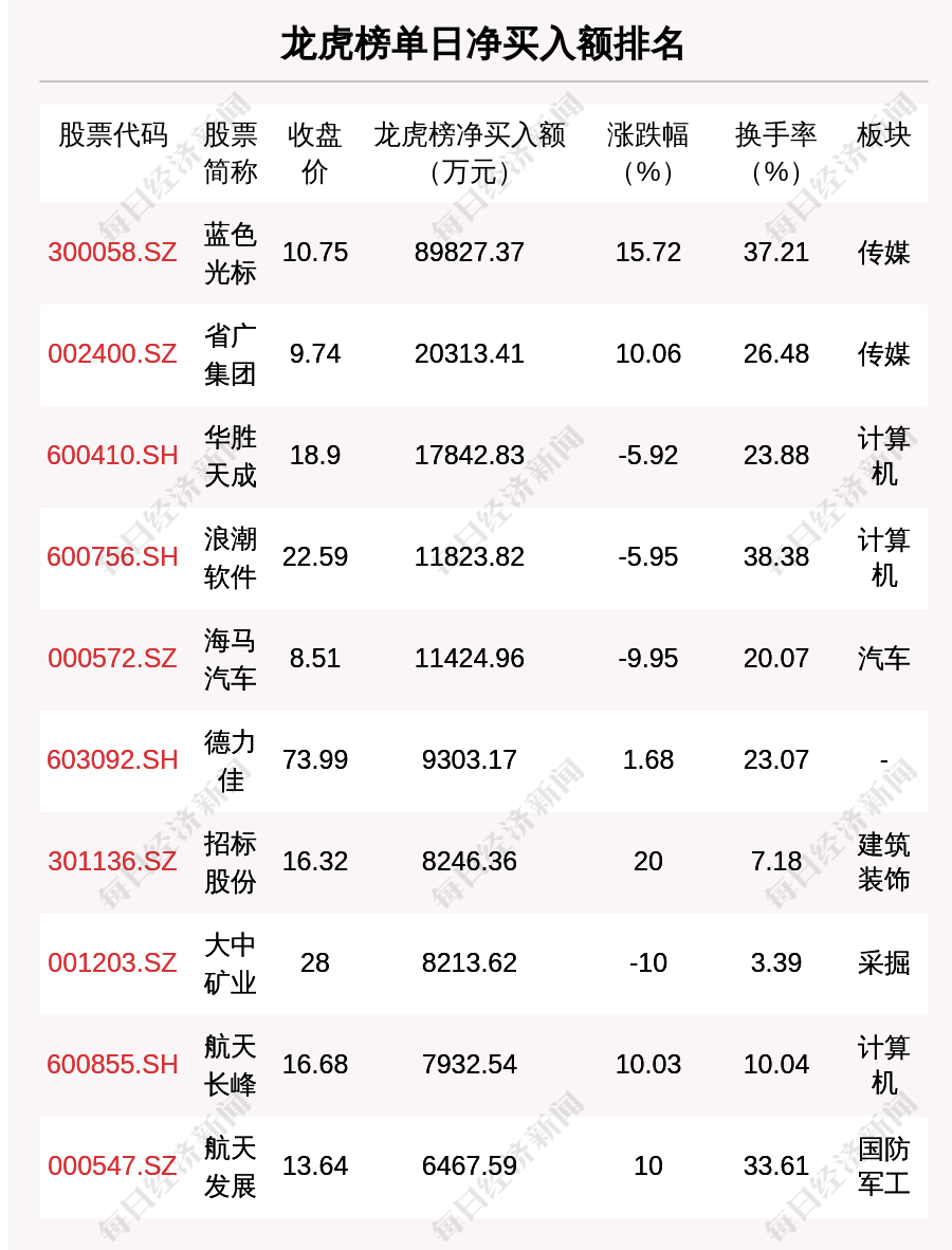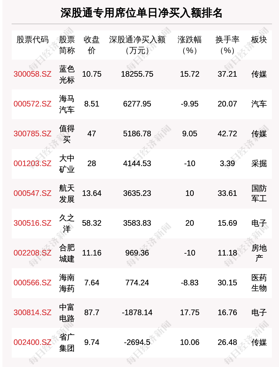在龍虎榜中,涉及深股通專用席位的個(gè)股有15只,藍(lán)色光標(biāo)的深股通專用席位凈買入額最大,凈買入1.83億元。
