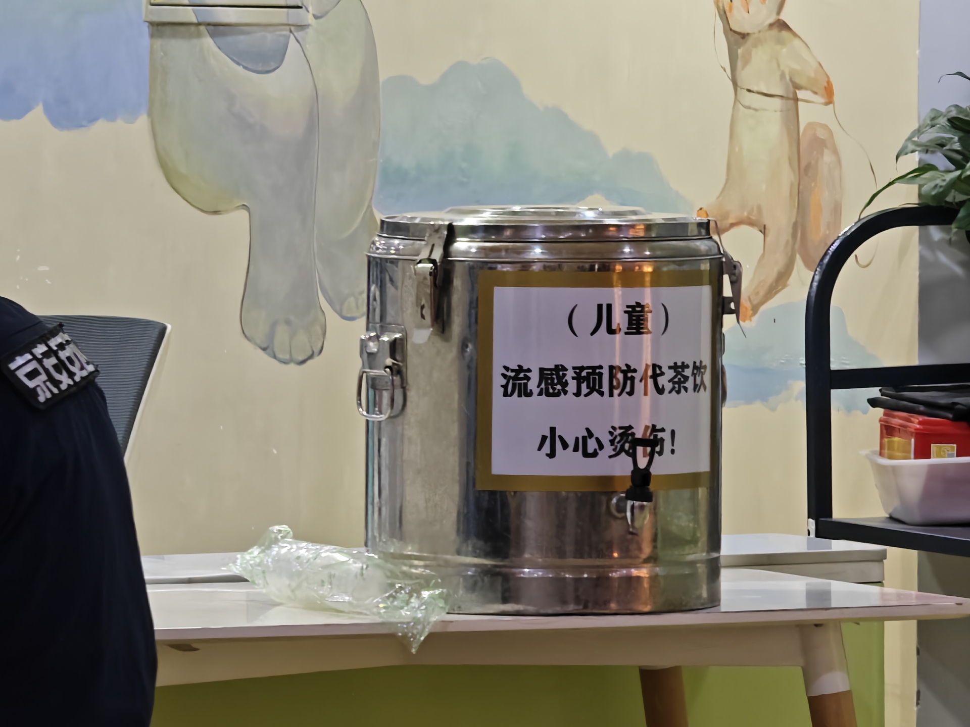 北京市通州區(qū)婦幼保健院兒童院區(qū)分診臺提供(兒童)流感預(yù)防代茶飲 圖片來源:每經(jīng)記者 林姿辰 攝