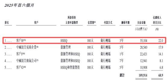 據(jù)招股書描述,2022年~2023年,德風科技的第一大客戶是一家我國國有電網(wǎng)運營商。2024年,這家電網(wǎng)運營商降為第二大客戶。而到了2025年上半年,其已退出了德風科技前五大客戶之列,第一大客戶被神秘的“客戶H”取代,該客戶于2022年成立,注冊資本1億元,從事信息系統(tǒng)集成服務。