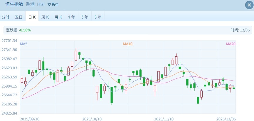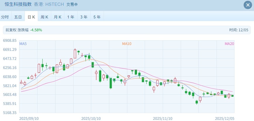 12月5日,恒生指數(shù)、恒生科技指數(shù)均小幅低開。