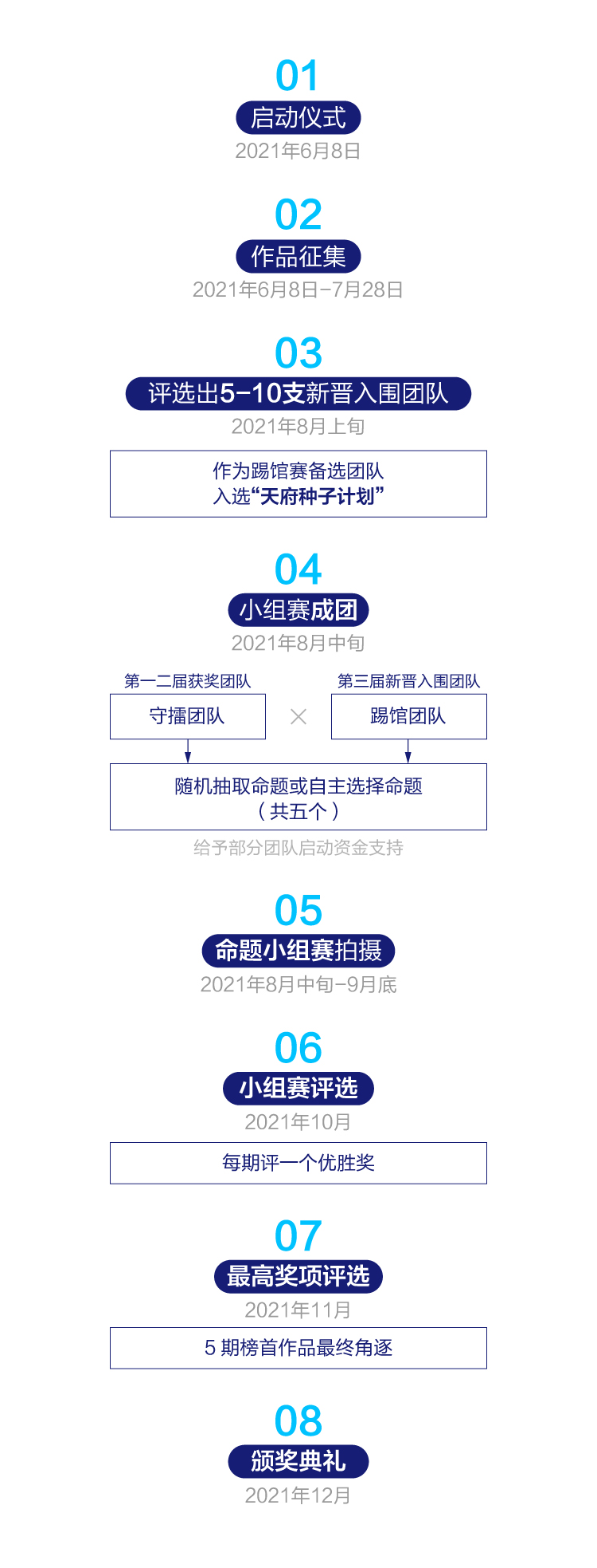 為鼓勵(lì)視頻創(chuàng)作,2021年將啟動(dòng)“天府種子計(jì)劃”,高標(biāo)準(zhǔn)、高質(zhì)量生產(chǎn)以成都為主題/背景的影像IP。該計(jì)劃將通過“揭榜掛帥”的模式,發(fā)布5-10個(gè)提供啟動(dòng)資金的“種子”項(xiàng)目,通過邀請(qǐng)俱樂部成員、社會(huì)報(bào)名、機(jī)構(gòu)推薦的形式,征集評(píng)選出視頻行業(yè)有潛力的承接團(tuán)隊(duì)、個(gè)人。俱樂部將組織專業(yè)評(píng)審對(duì)入圍團(tuán)隊(duì)/個(gè)人遞交的資料進(jìn)行評(píng)議打分,選出各個(gè)“種子”項(xiàng)目的承接方并予以執(zhí)行。