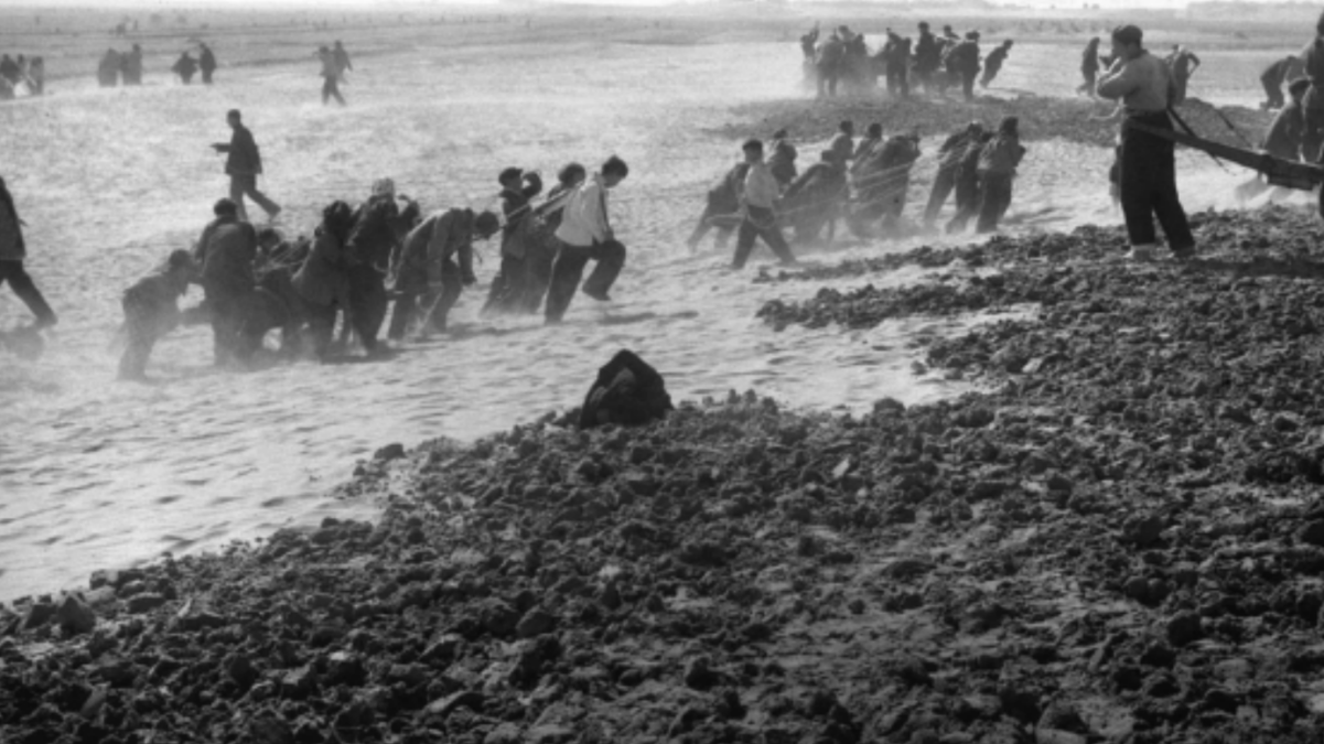 上圖為二十世紀六十年代蘭考改造鹽堿地的情景(資料照片);