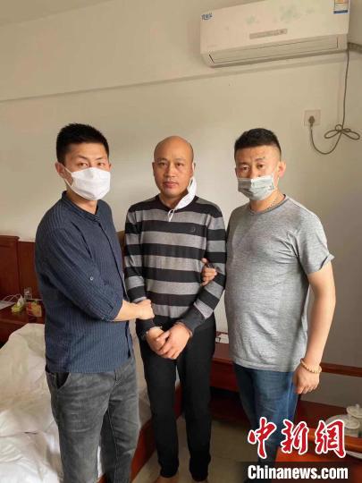圖為青海警方抓獲的公安部A級通緝令在逃人員劉國忠(中) 。青海省公安廳供圖
