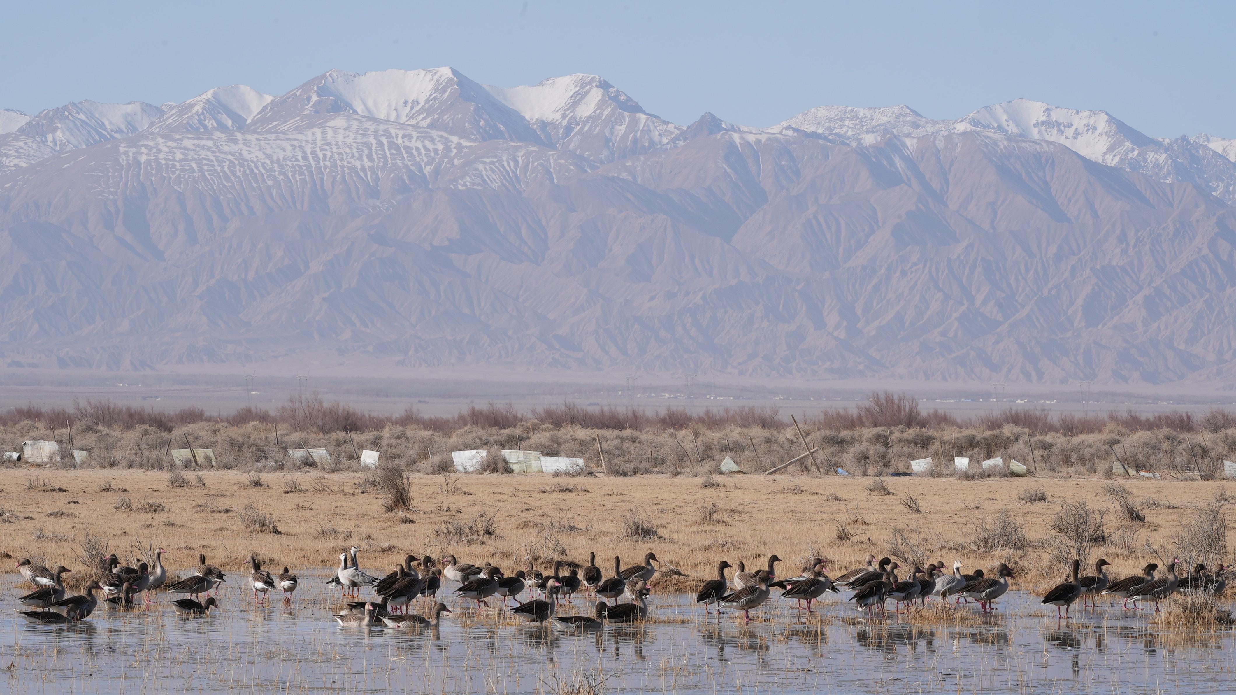 伴隨天氣回暖,3月14日,攝影愛好者在海西蒙古族藏族自治州都蘭縣境內(nèi)拍攝到大量候鳥覓食嬉戲的生動(dòng)場(chǎng)景。天鵝、斑頭雁、黃鴨、赤麻鴨、灰鶴等候鳥展翅高飛,恣意享受美好春日,勾勒出一幅山水靜好、飛鳥翔集的美麗生態(tài)畫卷。