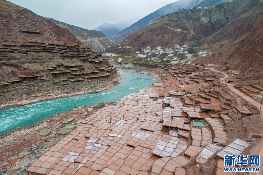在西藏昌都市芒康縣納西民族鄉(xiāng)拍攝的古鹽田(2月18日攝,無人機(jī)照片)。新華社記者 孫非 攝