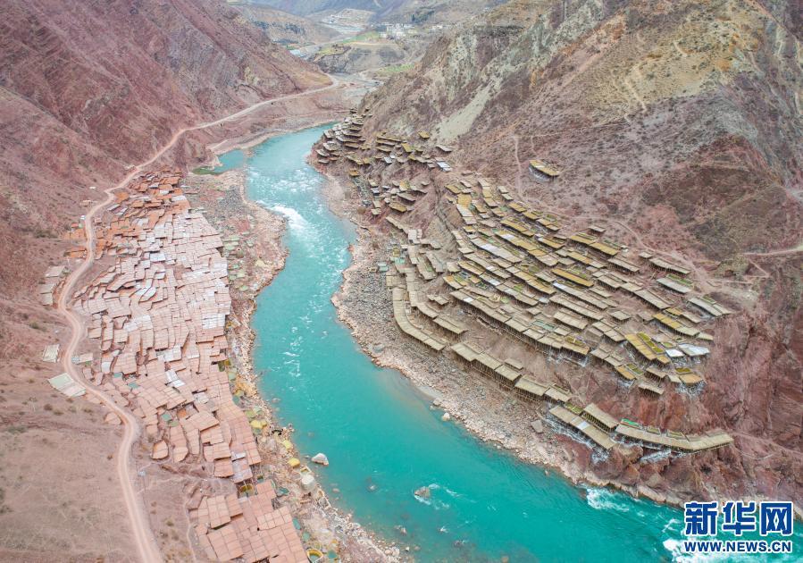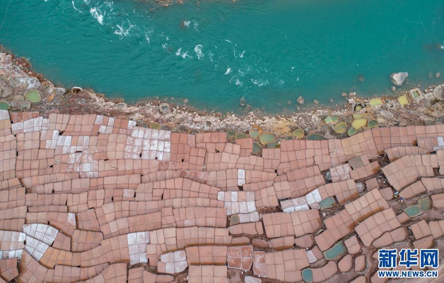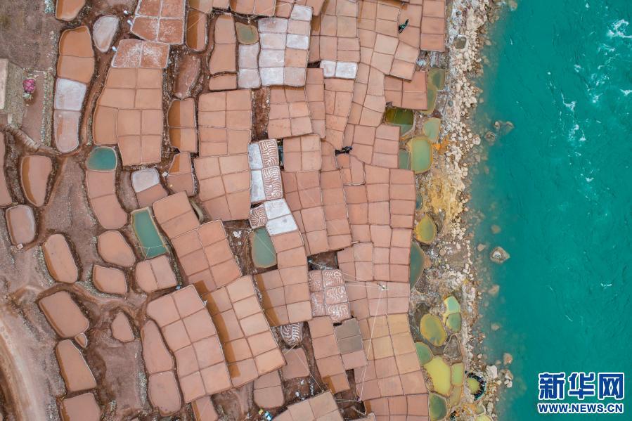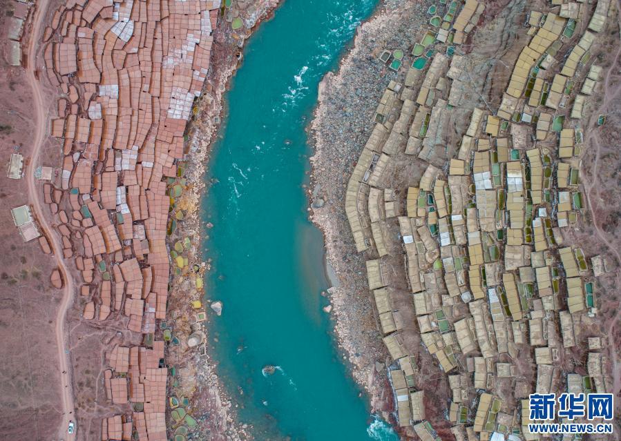 位于西藏昌都市芒康縣瀾滄江畔的古鹽田,至今仍保持原始的手工曬鹽方式。鹽田在瀾滄江兩岸依山而建,由多根木柱搭架,架上用透水性強(qiáng)的泥土鋪成平面夯實。當(dāng)?shù)鼐用駨臑憸娼系柠}井、鹽池中取出鹵水倒入鹽田,經(jīng)陽光蒸曬、風(fēng)干,結(jié)晶成鹽。遠(yuǎn)遠(yuǎn)望去,鹽田錯落有致,田中鹵水宛若鏡面,形成壯麗奇觀。????