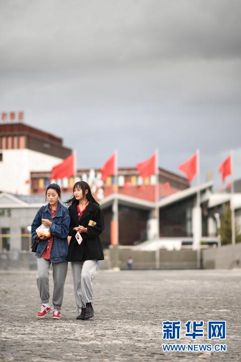 8月6日,市民走過(guò)玉樹(shù)市格薩爾廣場(chǎng)。新華社記者 吳剛 攝
