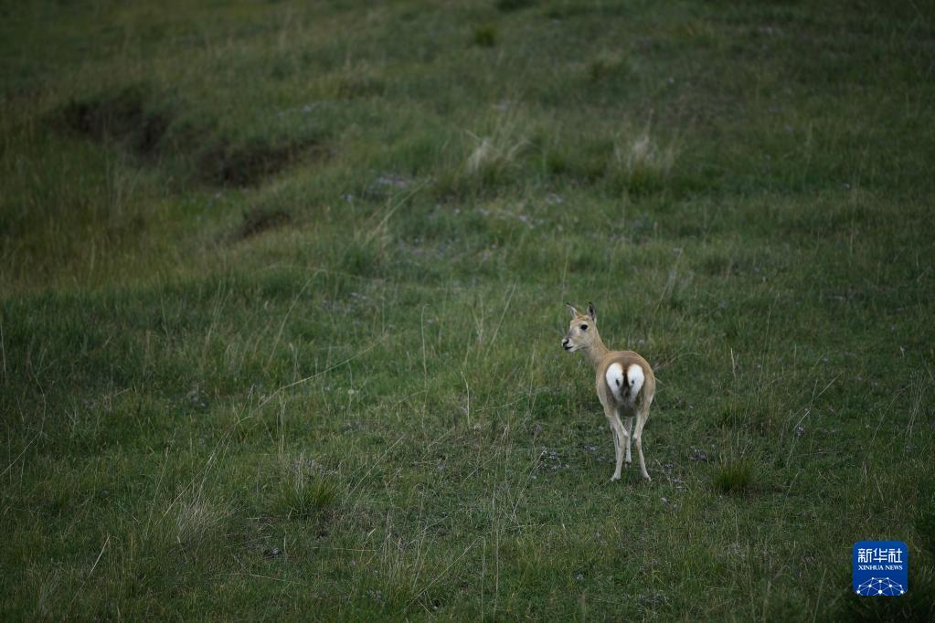 9月15日,一只普氏原羚在青海湖岸邊的牧場(chǎng)內(nèi)活動(dòng)。?新華社記者 張龍 攝