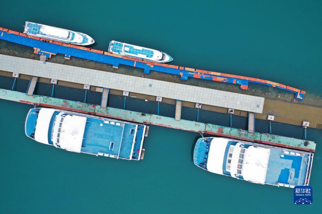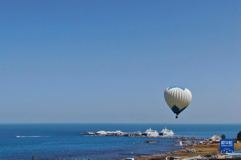 這是9月15日拍攝的青海湖上停泊的船只(無人機(jī)照片)。?新華社記者 邢廣利 攝
