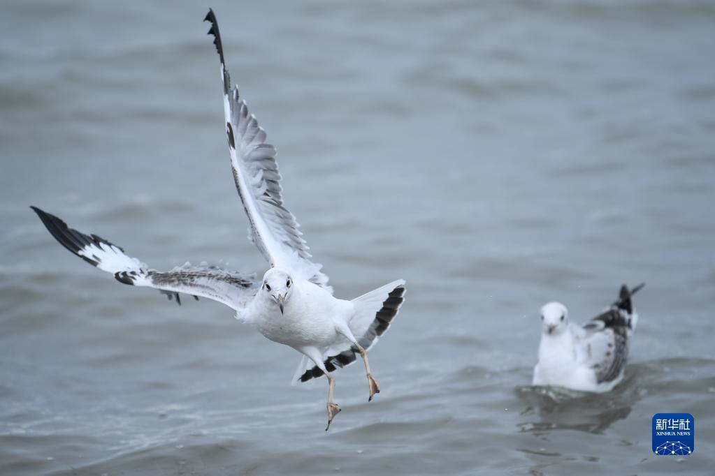 這是9月15日在青海湖邊拍攝的棕頭鷗。新華社記者 張龍 攝