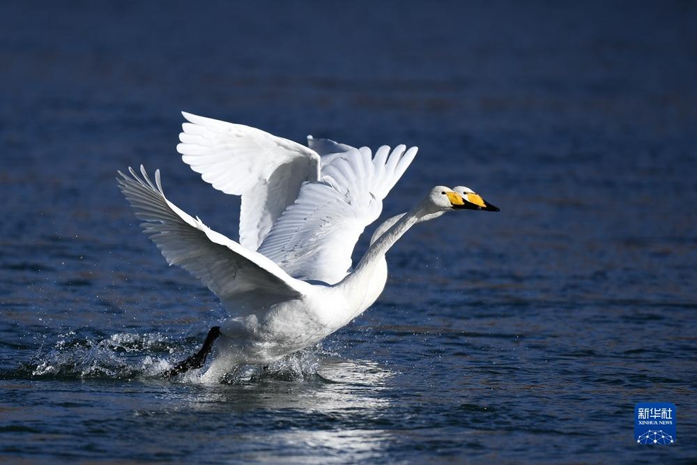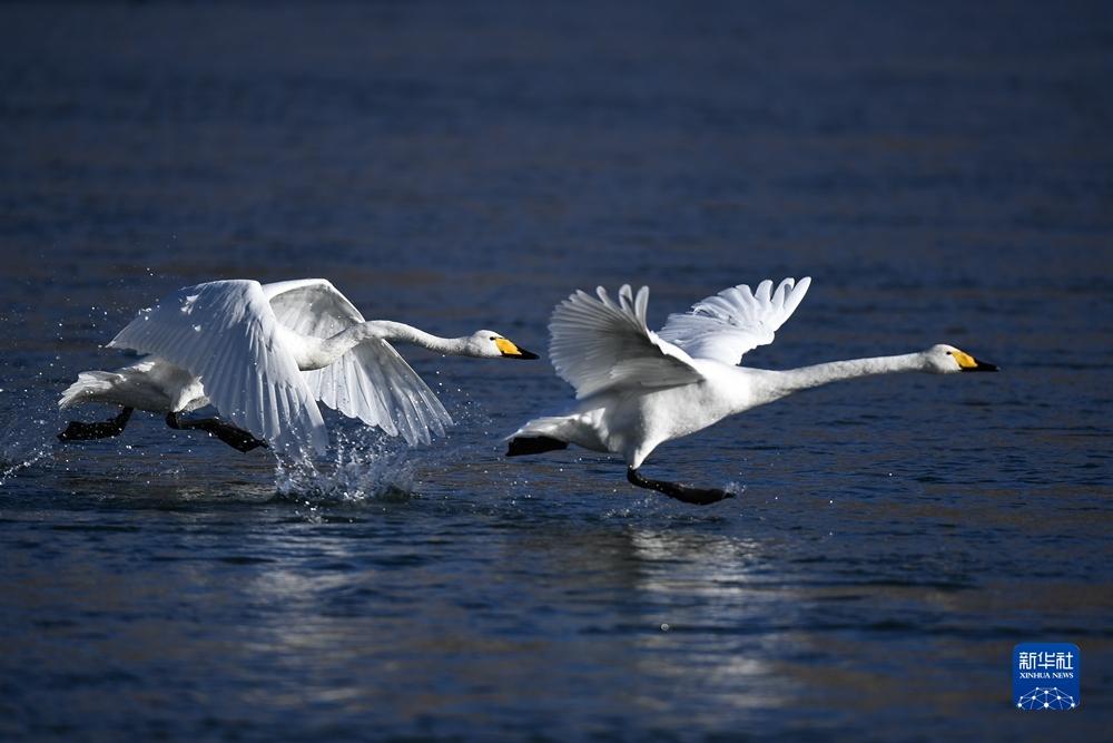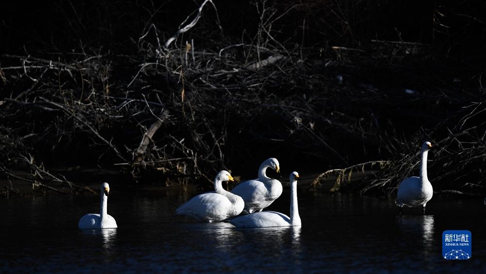 近日,前來越冬的近百只天鵝在青海省海南藏族自治州貴德縣境內的黃河濕地覓食休憩,為冬日黃河帶來勃勃生機。近年來,青海省加大力度保護治理境內黃河流域,改善當?shù)厣鷳B(tài)環(huán)境,為越冬候鳥提供良好棲息地。