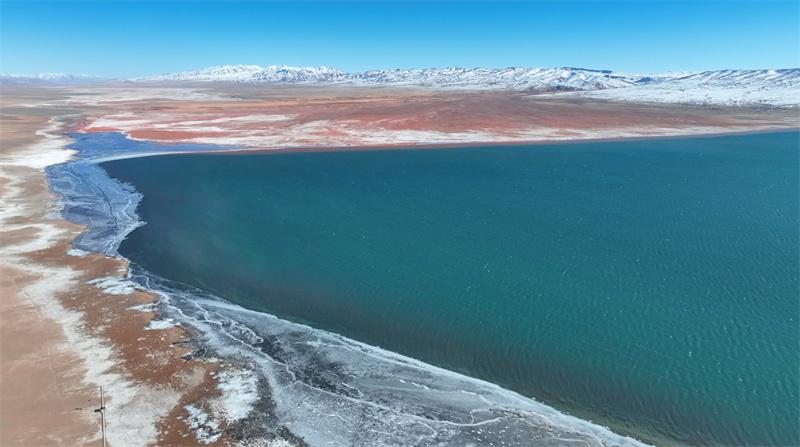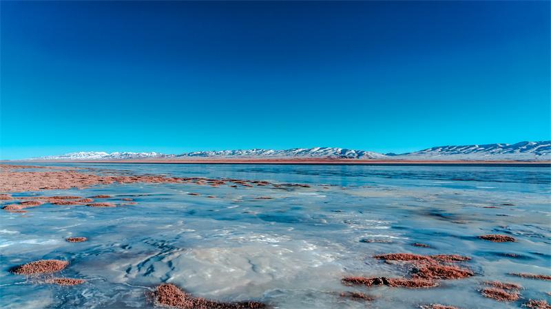 近日,地處柴達木盆地的青海省都蘭縣阿拉克湖進入冰封季,雪山下的湖水在陽光下閃閃發(fā)亮,光影流轉(zhuǎn)處,雪山與湖同在,美得令人窒息。