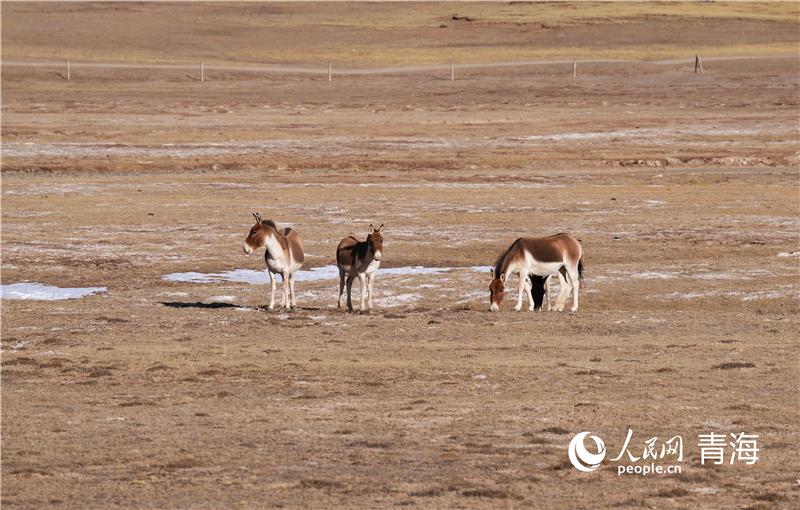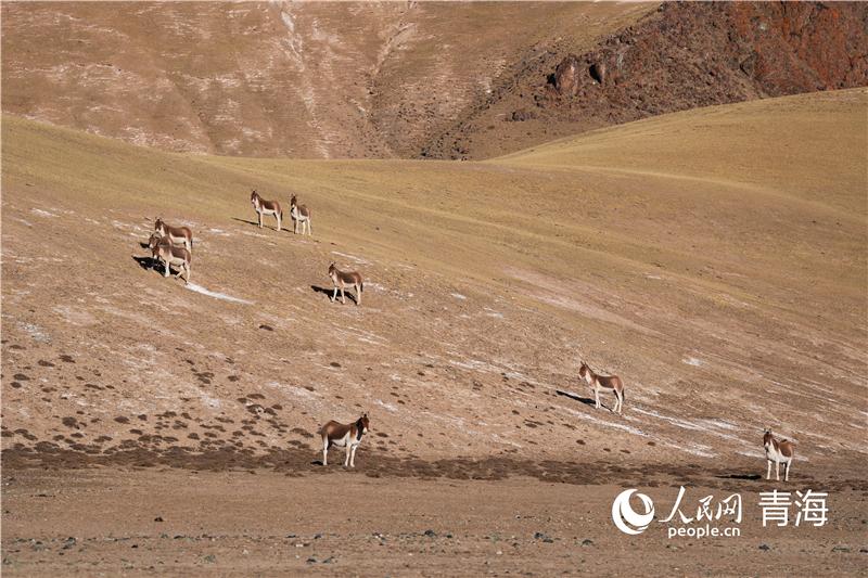 成群的藏野驢在鄂陵湖周邊覓食。人民網(wǎng) 白波攝