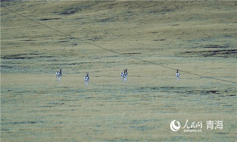 成群藏原羚奔跑。人民網(wǎng)記者 楊啟紅攝