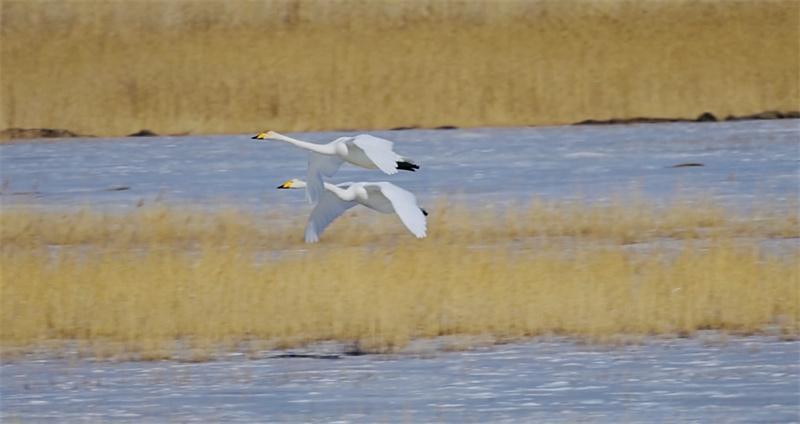 天鵝飛抵柴達木盆地可魯克湖越冬。青??婶斂撕?托素湖省級自然保護區(qū)供圖