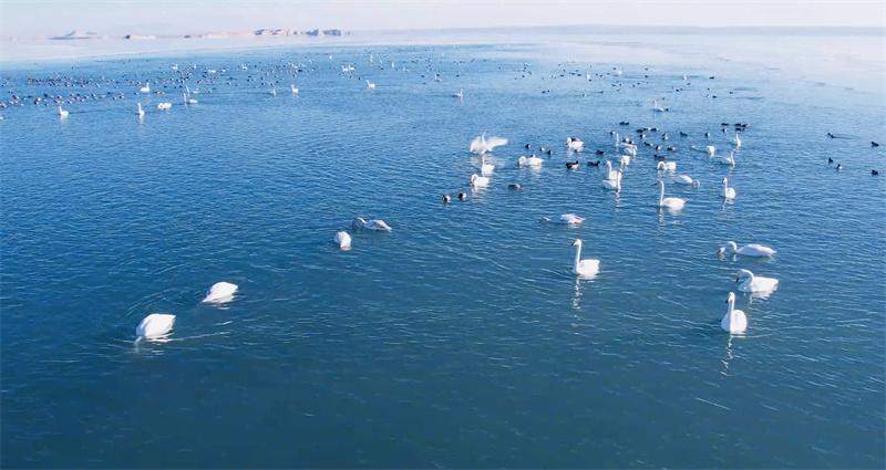 在柴達木盆地可魯克湖越冬的鳥類。青??婶斂撕?托素湖省級自然保護區(qū)供圖