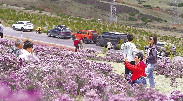 首頁(yè) / 旅游 / 雪域山水 / 正文 山花爛漫惹人醉 來(lái)源 : 西藏日?qǐng)?bào) 發(fā)布時(shí)間 : 2024-06-19 字體 :小 中 大 圖為游客在杜鵑花海中玩賞。扎西 記者 萬(wàn)慧 攝每年6月是芒康縣拉烏山野生杜鵑花的盛開期。這些杜鵑花生長(zhǎng)在山坡上,一叢叢,一片片,在陽(yáng)光的照耀下燦似朝霞,絢爛美麗,將連綿起伏的山巒點(diǎn)綴得更加生機(jī)勃勃。 編輯 : 才讓尖措