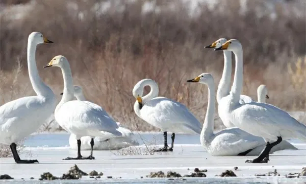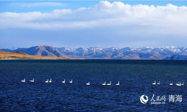 上百只天鵝飛抵柴達木盆地可魯克湖越冬