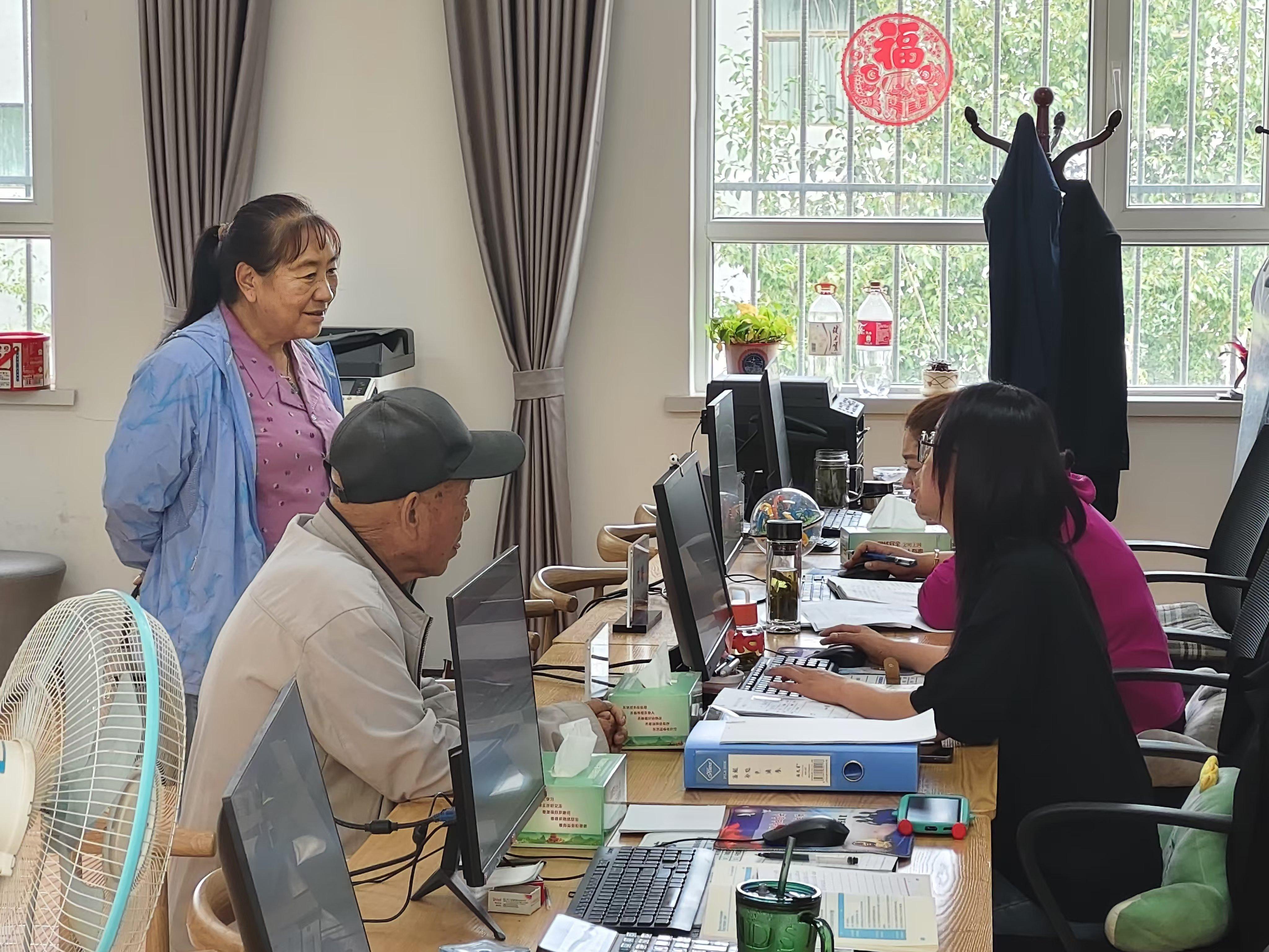 社區(qū)工作人員為群眾“答疑解惑”。本報(bào)記者 余暉 攝