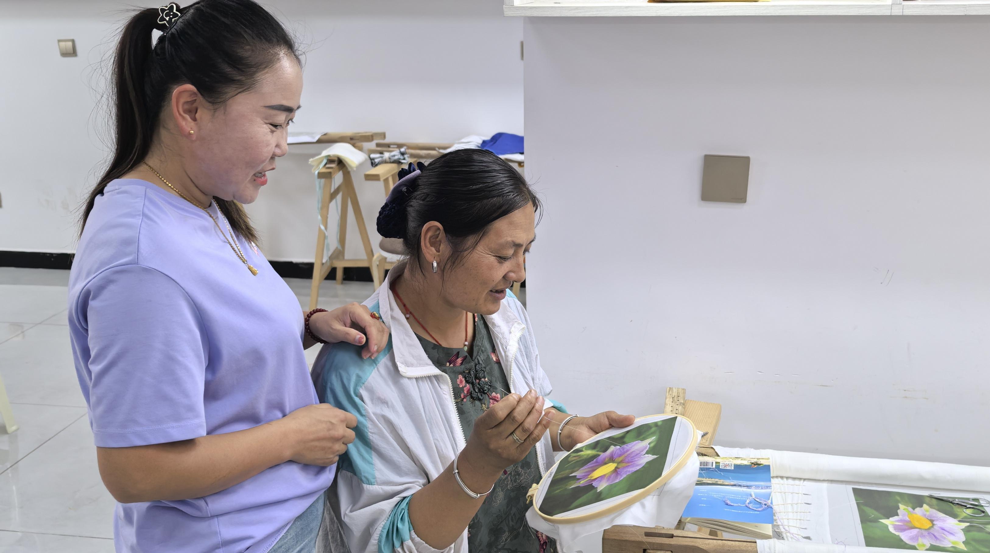 楊拉青吉一邊學(xué)著勾線一邊說(shuō):“學(xué)刺繡快一年了,雖然手藝還不夠精湛,但去年也掙了4000多元?,F(xiàn)在搬進(jìn)小區(qū),掙錢(qián)、顧家兩不誤。各民族鄰里姐妹聚在一起繡刺繡,既能相互幫助提高技藝、交流感情,還能通過(guò)手藝掙錢(qián)貼補(bǔ)家用,心里真的很高興?!?/p>