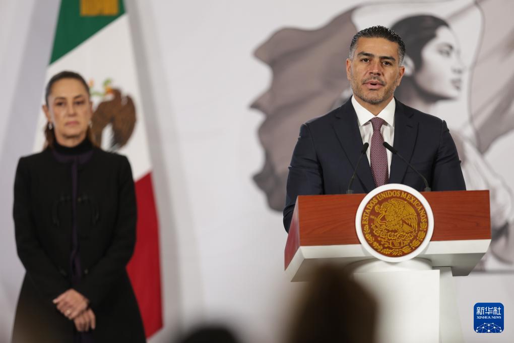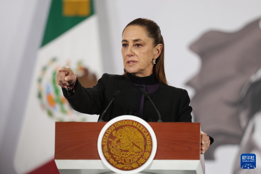 ??2月23日,在墨西哥首都墨西哥城,墨西哥總統(tǒng)辛鮑姆出席新聞發(fā)布會(huì)。新華社發(fā)(弗朗西斯科·卡涅多攝)
