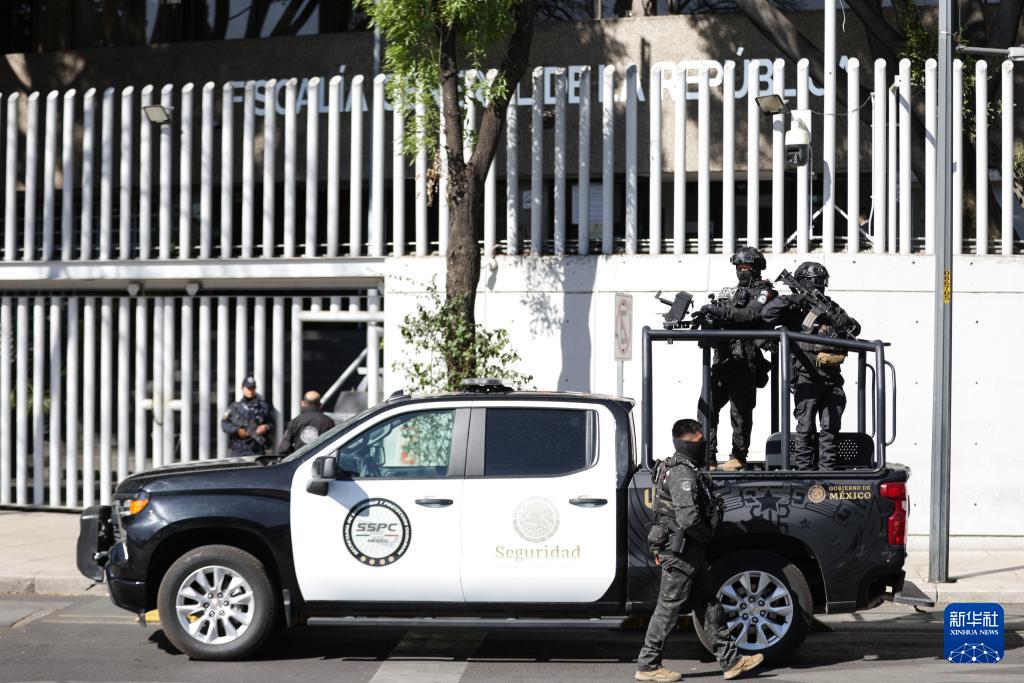 ??2月23日,在墨西哥首都墨西哥城,安全人員在街頭執(zhí)勤。新華社發(fā)(弗朗西斯科·卡涅多攝)