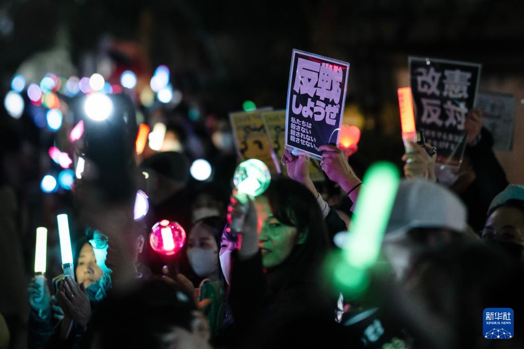 當(dāng)晚的集會(huì)有近千人參加??棺h者手舉寫有“反對(duì)戰(zhàn)爭(zhēng),維護(hù)憲法”“不要戰(zhàn)爭(zhēng) 不要高市”“不能容忍高市政治”等字樣的牌子,高呼“反對(duì)修憲”“守護(hù)和平”等口號(hào),對(duì)高市企圖修憲表達(dá)不滿。