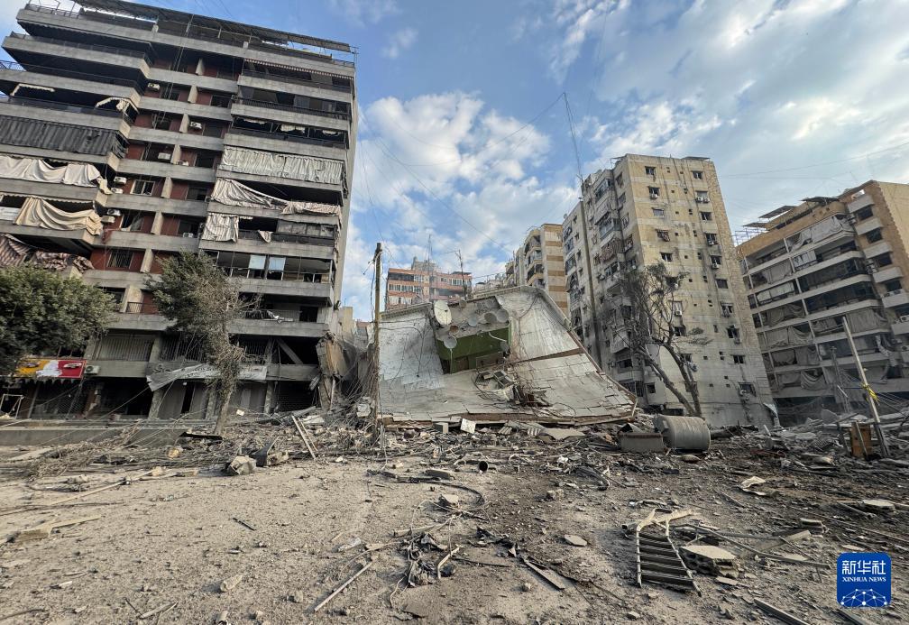 這是3月7日在黎巴嫩首都貝魯特南郊拍攝的被以色列襲擊摧毀的建筑。新華社發(fā)(比拉爾·賈維希攝)