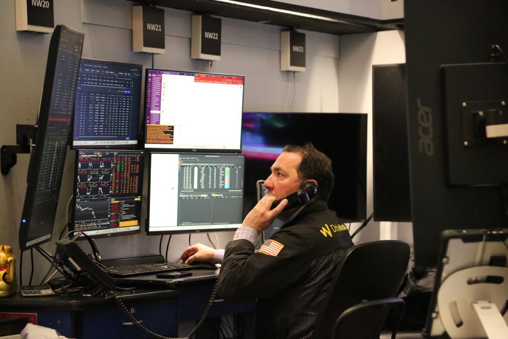 3月18日,紐約股市三大股指顯著下跌。圖為當(dāng)天交易員在紐約證券交易所交易大廳內(nèi)工作。新華社記者劉亞南攝