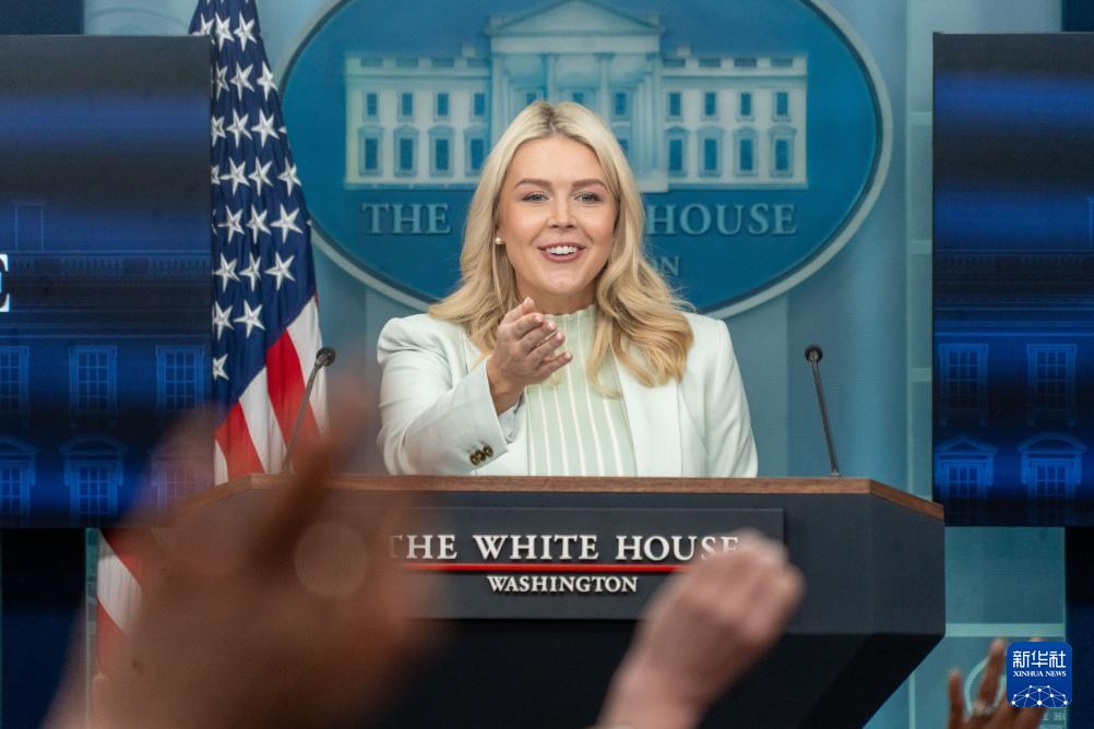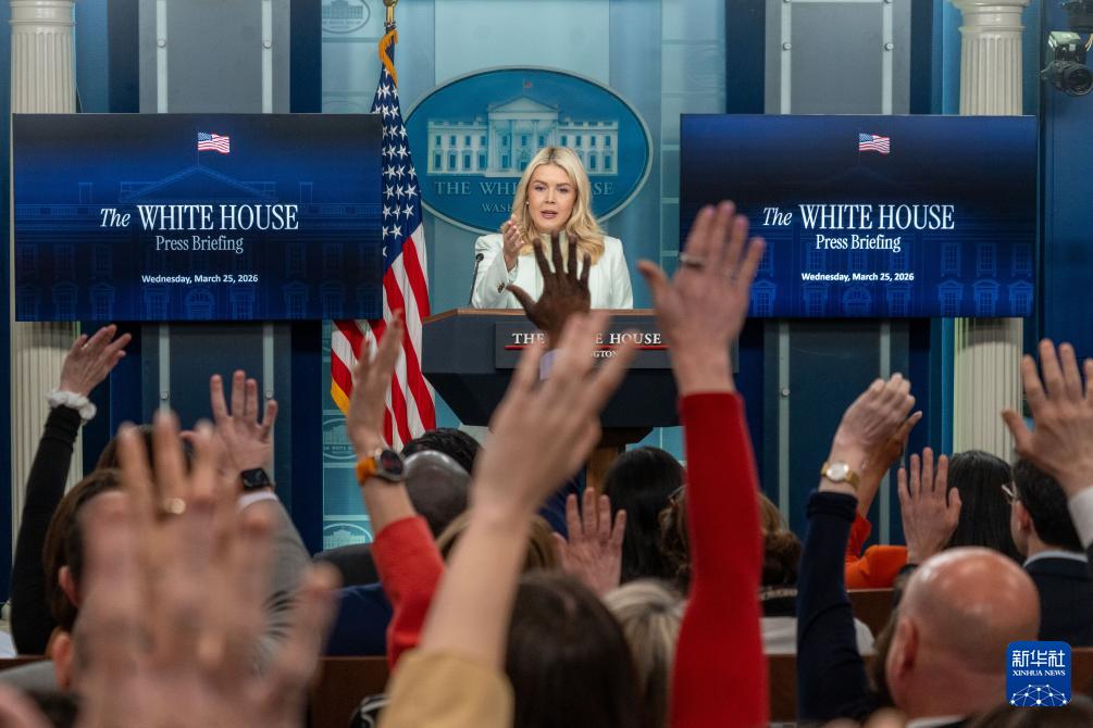 3月25日,在美國首都華盛頓白宮,白宮新聞秘書萊維特出席記者會(huì)。新華社發(fā)(李源清攝)