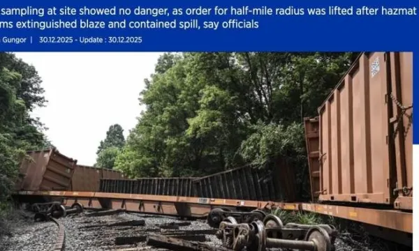 驚險!美一載熔融硫磺列車脫軌起火,31節(jié)車廂沖出軌道