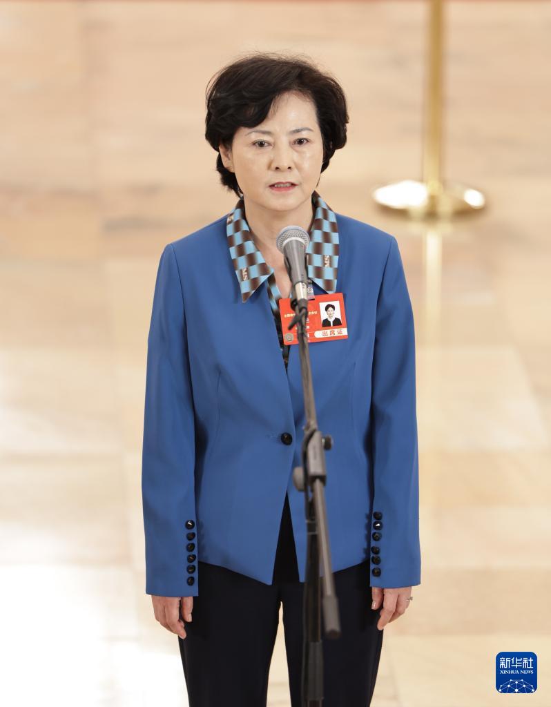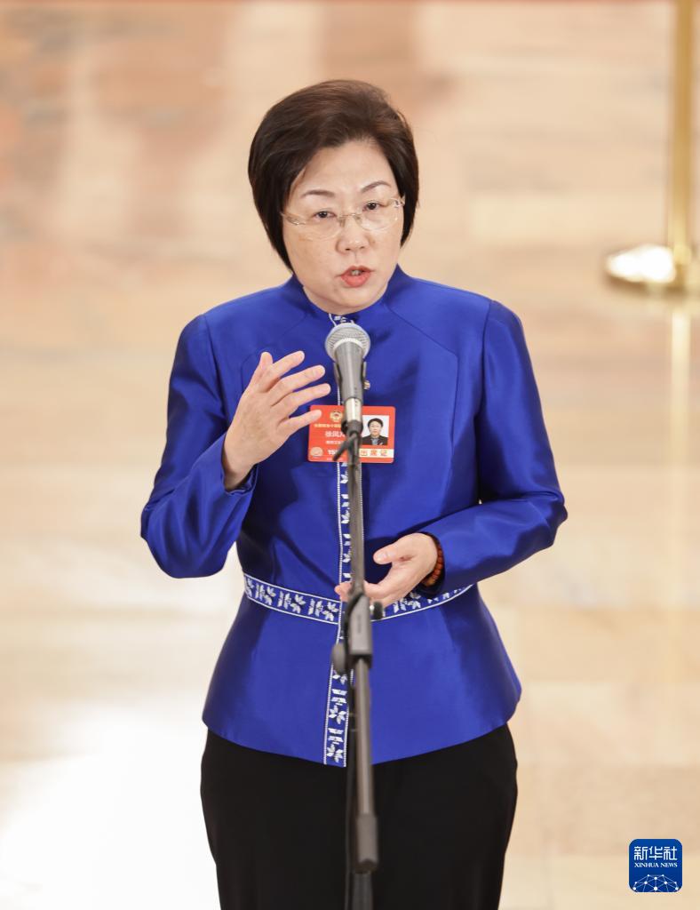 3月7日,全國政協(xié)十四屆三次會議第二場“委員通道”集體采訪活動在北京人民大會堂舉行。這是全國政協(xié)委員徐鳳芹接受媒體采訪。新華社記者 張玉薇 攝