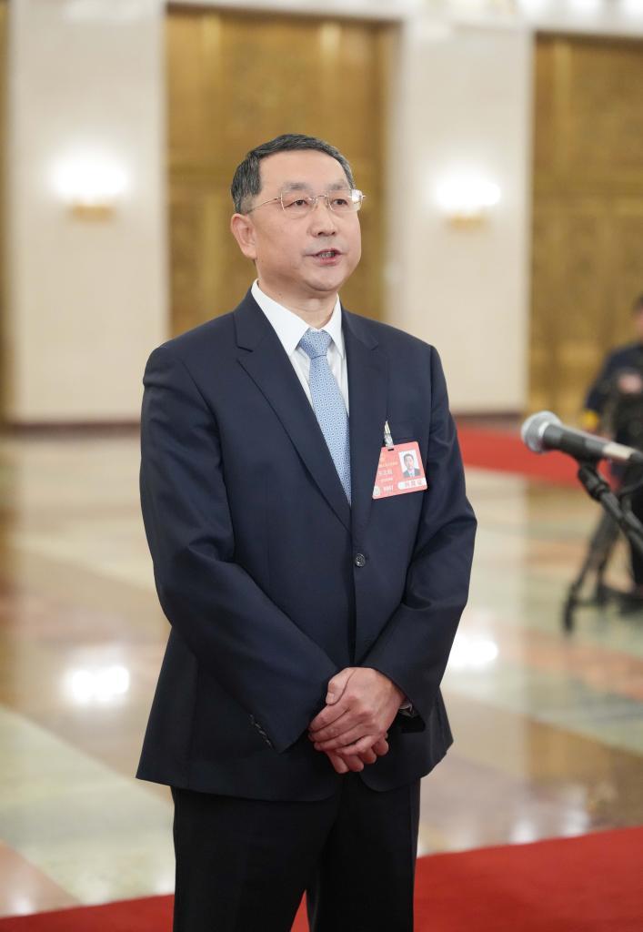 3月11日,第十四屆全國人民代表大會(huì)第三次會(huì)議第三場“部長通道”集中采訪活動(dòng)在北京人民大會(huì)堂舉行。這是自然資源部部長關(guān)志鷗接受媒體采訪。新華社記者 鄭煥松 攝