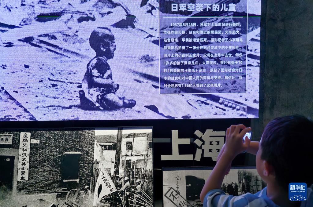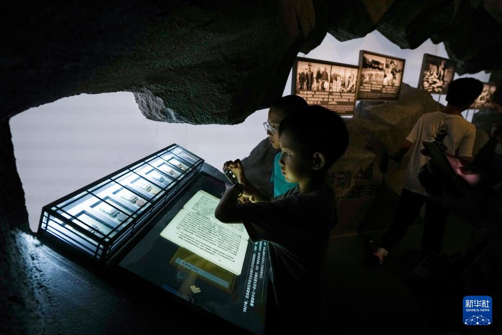 一名小朋友在中國(guó)人民抗日戰(zhàn)爭(zhēng)紀(jì)念館《為了民族解放與世界和平》主題展覽參觀(7月22日攝)。新華社記者 鞠煥宗 攝