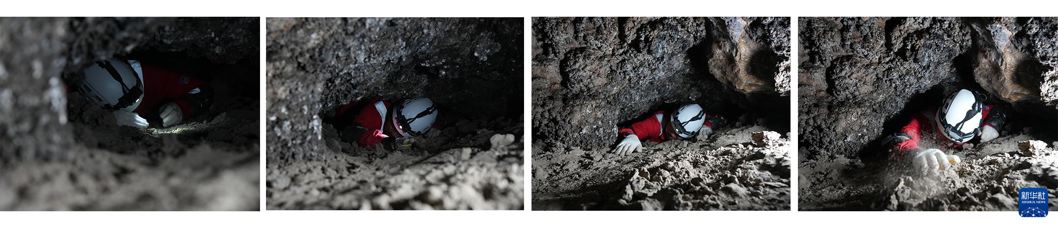 2025年12月,航天員開(kāi)展洞穴訓(xùn)練艱難爬過(guò)狹窄管洞(拼版照片)。新華社發(fā)
