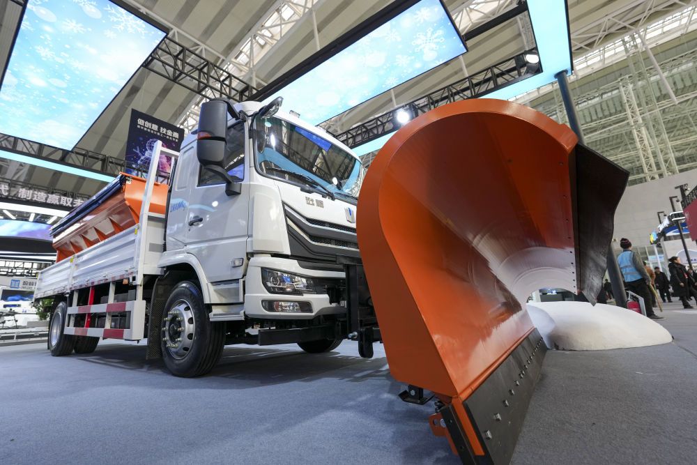 這是2026年1月6日在2026哈爾濱國(guó)際冰雪經(jīng)濟(jì)博覽會(huì)展會(huì)拍攝的大型清雪設(shè)備展品。