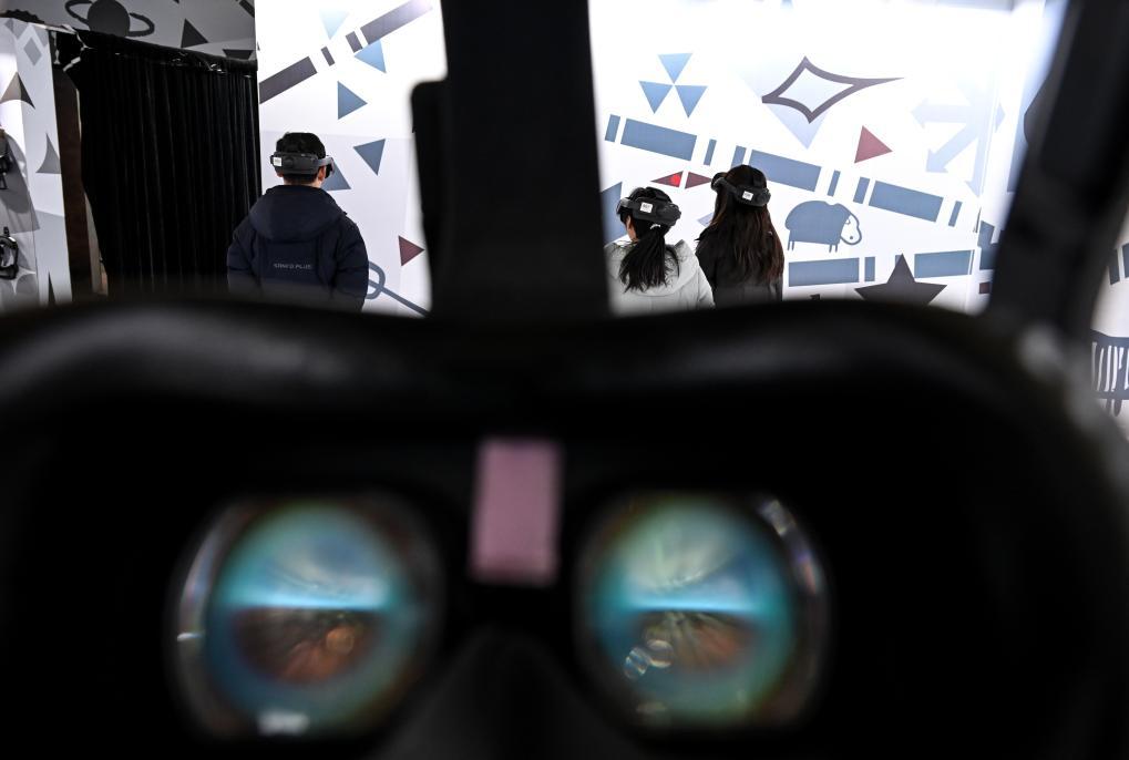 游客戴上VR眼鏡,沉浸式“飛越”西夏陵、到地宮“探險”。新華社記者馮開華 攝