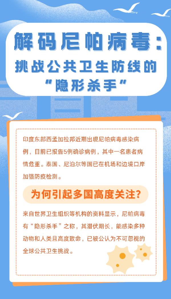 首頁 / 新聞 / 國(guó)內(nèi)新聞 / 正文 嘮科|解碼尼帕病毒:挑戰(zhàn)公共衛(wèi)生防線的“隱形殺手” 來源 : 新華網(wǎng) 發(fā)布時(shí)間 : 2026-01-28 字體 :小 中 大 記者:張瑩編輯:馮玉婧制圖:吳佳潞嘮科工作室出品 編輯 : ?????????????