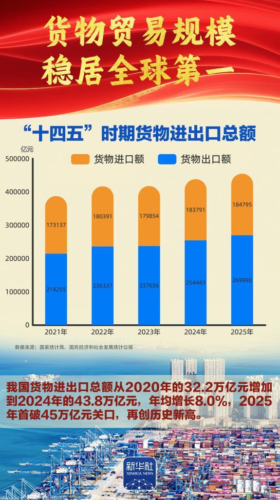 “十四五”勝利收官,“十五五”嶄新開(kāi)局。我國(guó)經(jīng)濟(jì)總量完成“四連跳”,躍上140萬(wàn)億元大關(guān),經(jīng)濟(jì)實(shí)力、科技實(shí)力、綜合國(guó)力躍上新臺(tái)階,中國(guó)式現(xiàn)代化邁出新的堅(jiān)實(shí)步伐,第二個(gè)百年奮斗目標(biāo)新征程實(shí)現(xiàn)良好開(kāi)局。2026年全國(guó)兩會(huì)召開(kāi),舉世矚目。我們梳理出九組數(shù)據(jù),一起感受勝利收官的壯闊歷程、啟新開(kāi)局的高光時(shí)刻。