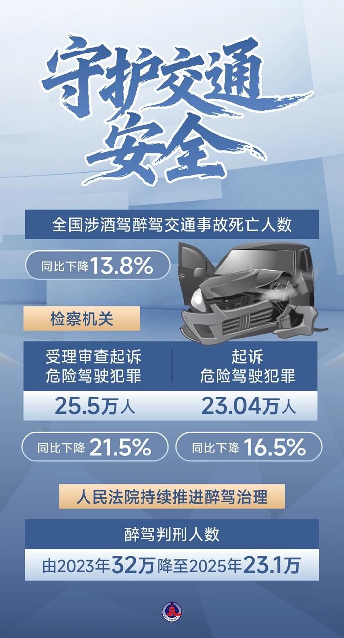 最高法報(bào)告指出,辦理醉駕刑事案件意見出臺(tái)后,判刑人數(shù)由2023年32萬降至2025年23.1萬,因酒駕造成交通事故及致死、致傷數(shù)量均有下降。同時(shí),明確“駕駛?cè)俗砭坪髥⒂幂o助駕駛功能仍應(yīng)承擔(dān)刑事責(zé)任”。
