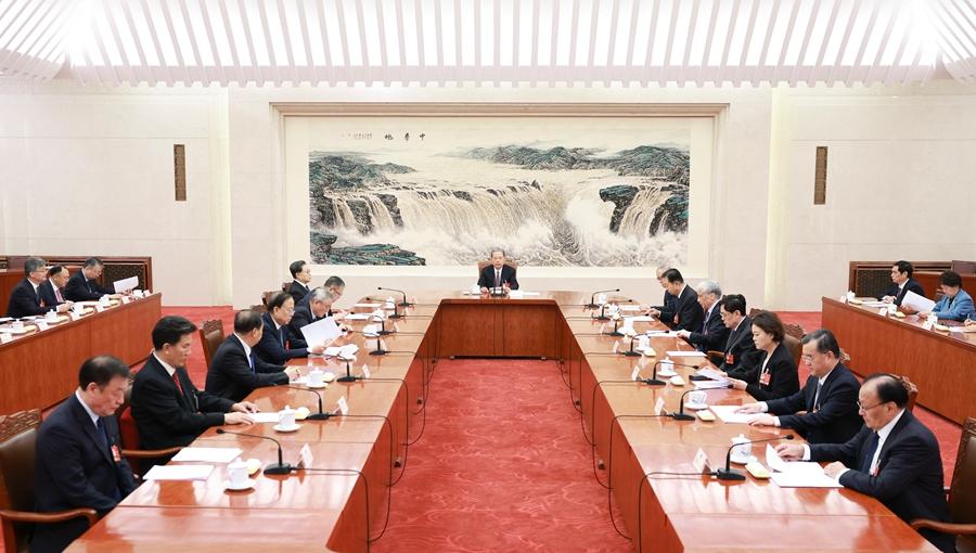 ??3月12日上午,十四屆全國人大四次會(huì)議主席團(tuán)常務(wù)主席第三次會(huì)議在北京人民大會(huì)堂舉行。大會(huì)主席團(tuán)常務(wù)主席、全國人大常委會(huì)委員長(zhǎng)趙樂際主持會(huì)議。新華社記者 丁海濤 攝
