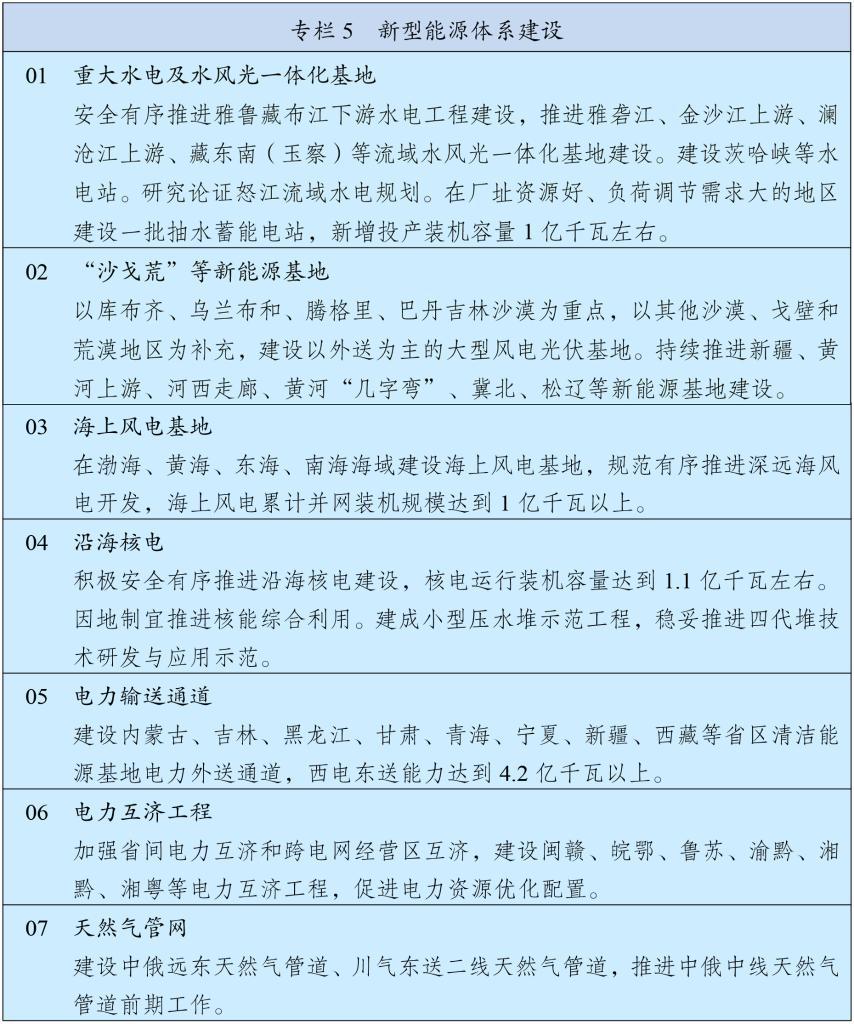 堅持立足國內(nèi)、補齊短板、多元保障、強化儲備,加強能源產(chǎn)供儲銷體系建設(shè)。堅持油氣核心需求自主保障,實施中長期油氣增儲上產(chǎn)戰(zhàn)略行動,確保原油年產(chǎn)量穩(wěn)定在2億噸左右、天然氣產(chǎn)量穩(wěn)步增長,加強煤制油氣產(chǎn)能和技術(shù)儲備。強化政府儲備和企業(yè)儲備協(xié)同,提升國家石油儲備規(guī)模,建立更加靈活的輪換動用機制,增強天然氣儲備調(diào)節(jié)保障能力,完善煤炭儲備體系。健全能源保供中長期合同制度,完善電力應(yīng)急調(diào)度機制和備用電源配置,強化能源需求側(cè)管理。加強戰(zhàn)略性礦產(chǎn)資源勘探開發(fā)和儲備,深入實施新一輪找礦突破戰(zhàn)略行動,統(tǒng)籌加強產(chǎn)品、產(chǎn)能和產(chǎn)地儲備,推動大宗商品儲運基地建設(shè),提升戰(zhàn)略性礦產(chǎn)資源安全風(fēng)險監(jiān)測預(yù)警和應(yīng)急保供水平。加強能源資源開發(fā)國際合作,維護戰(zhàn)略通道安全。