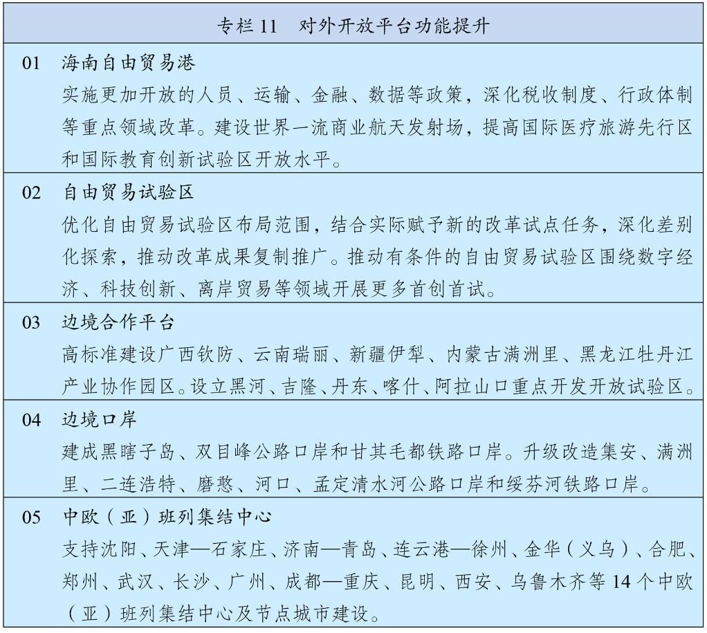 支持香港鞏固提升國際金融、航運、貿(mào)易中心和國際航空樞紐地位,強化全球離岸人民幣業(yè)務(wù)樞紐、國際資產(chǎn)及財富管理中心、國際風(fēng)險管理中心功能,構(gòu)建大宗商品交易生態(tài)圈和高增值供應(yīng)鏈服務(wù)中心。支持香港建設(shè)國際創(chuàng)新科技中心,深化國際法律及解決爭議服務(wù)中心、區(qū)域知識產(chǎn)權(quán)貿(mào)易中心、中外文化藝術(shù)交流中心建設(shè),加快北部都會區(qū)建設(shè)。支持澳門經(jīng)濟適度多元發(fā)展,深化世界旅游休閑中心、中國與葡語國家商貿(mào)合作服務(wù)平臺和以中華文化為主流、多元文化共存的交流合作基地建設(shè),提升中醫(yī)藥大健康、特色金融、高新技術(shù)、會展商貿(mào)等產(chǎn)業(yè)競爭力。支持港澳打造國際高端人才集聚高地。